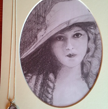 mit Motiv (von mir eingearbeitet) und Glascabochon